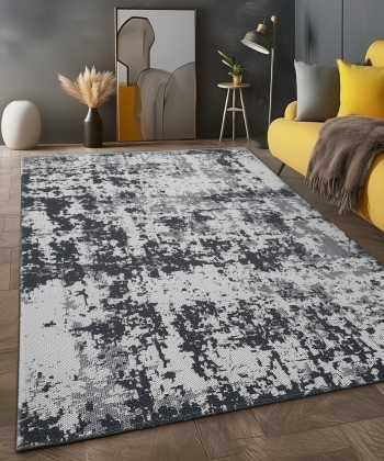 Cotton Rug Grey Black Abstract